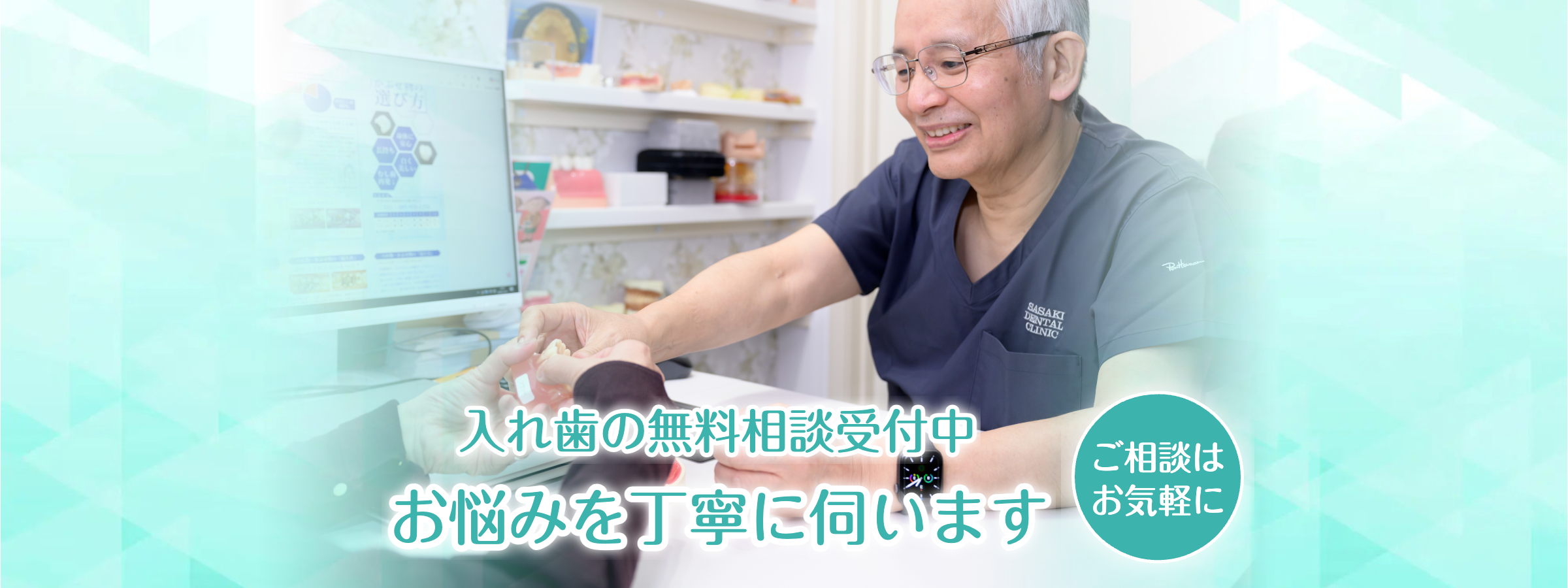 松山市の「佐々木歯科」は、入れ歯・義歯治療に注力する歯医者です。院長は日本補綴歯科学会認定「専門医」「指導医」で、40年以上(※)の経験と年間1,000症例(※)の実績を活かした治療を行います。