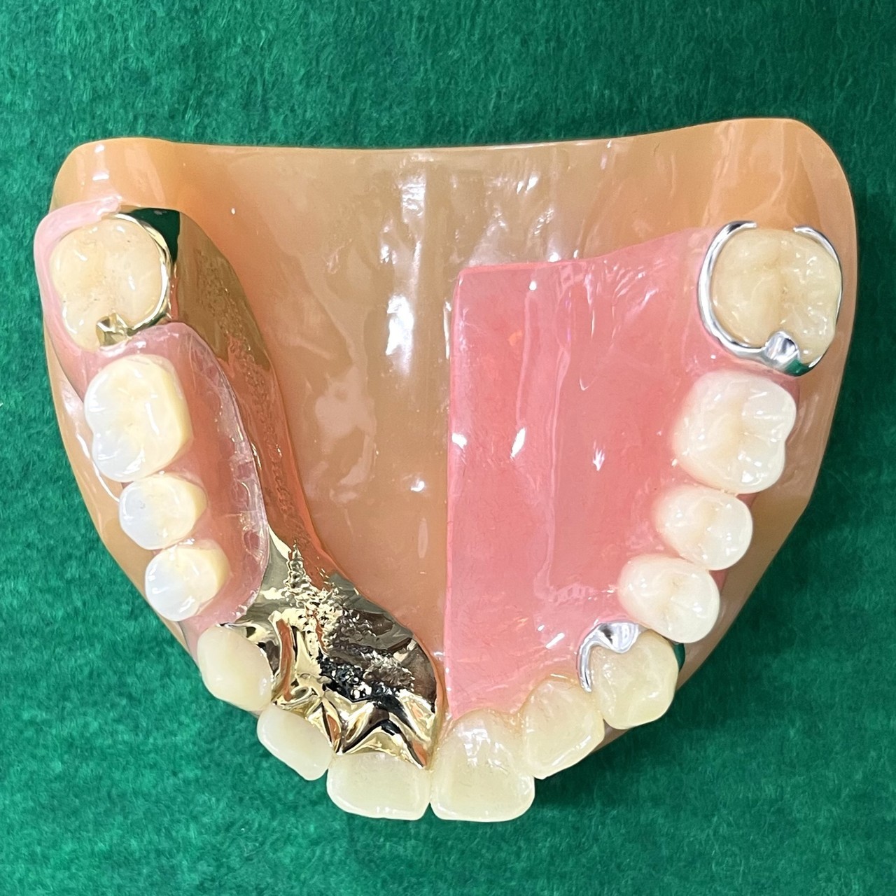 入れ歯の裏側を生体用シリコンというクッション素材で覆った入れ歯です。噛んだ時の痛みが少なく、外れにくいという特徴があります。